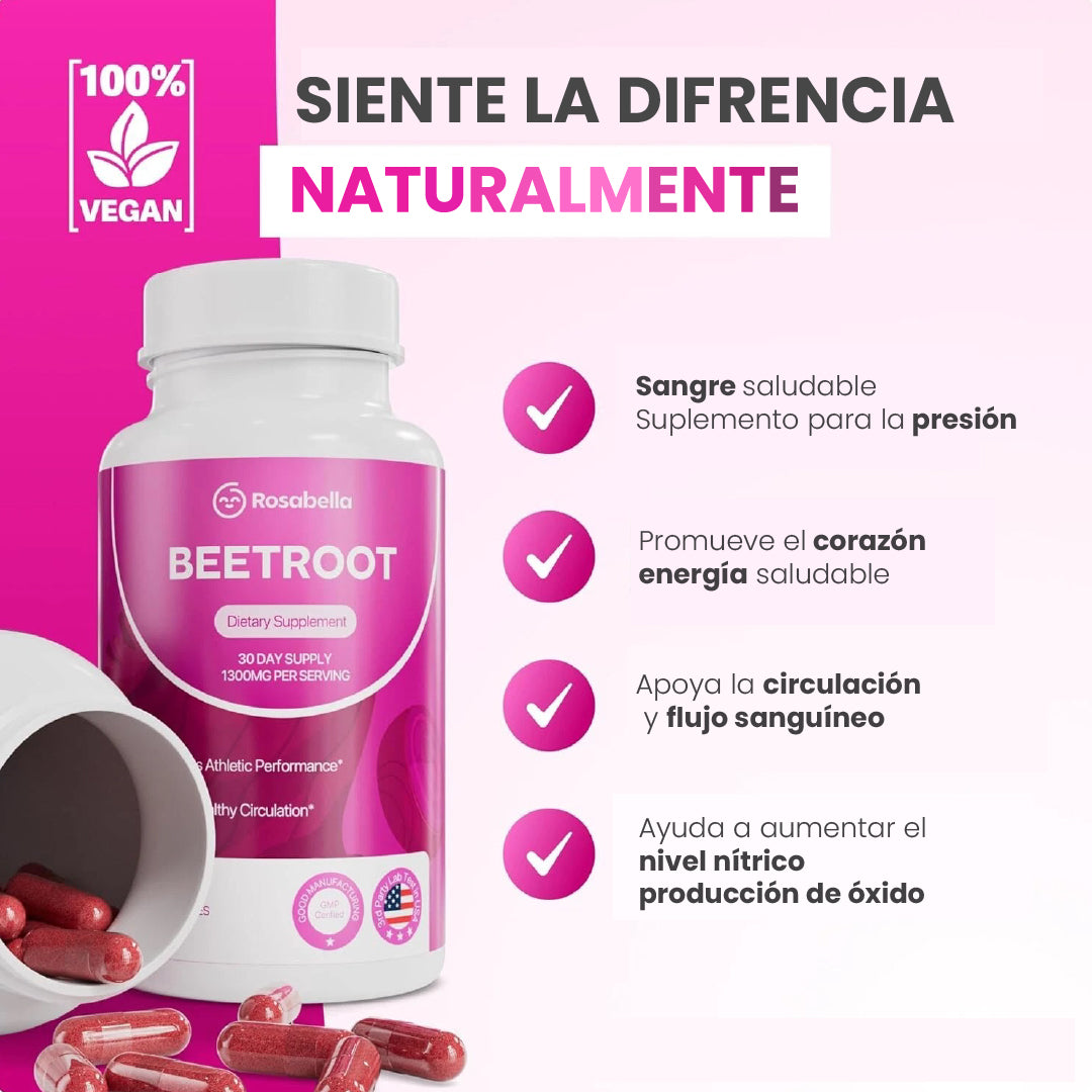Beetroot dilata tus vasos sanguíneos, mejora el flujo y lleva más oxígeno a tu cuerpo, siente el cambio real desde la primera semana con solo 2 cápsulas al día.