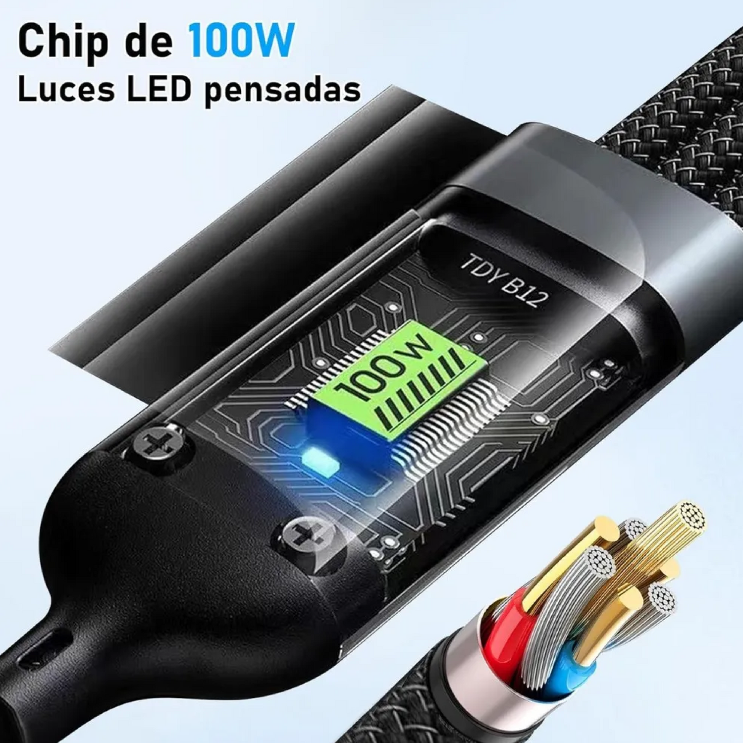 Con salida de hasta 100W, este cable lleva tu batería de 0 a 100 en minutos.