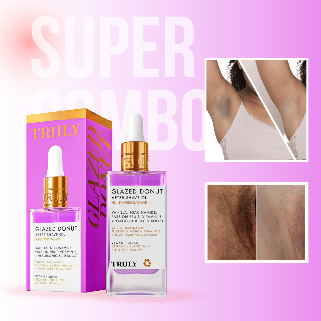 La fórmula ligera de Soft Serve y Glazed Donut de Truly, bloquea la inflamación y evita que los vellos se encarnen, para que tu zona íntima, axilas y piernas se sientan libres.