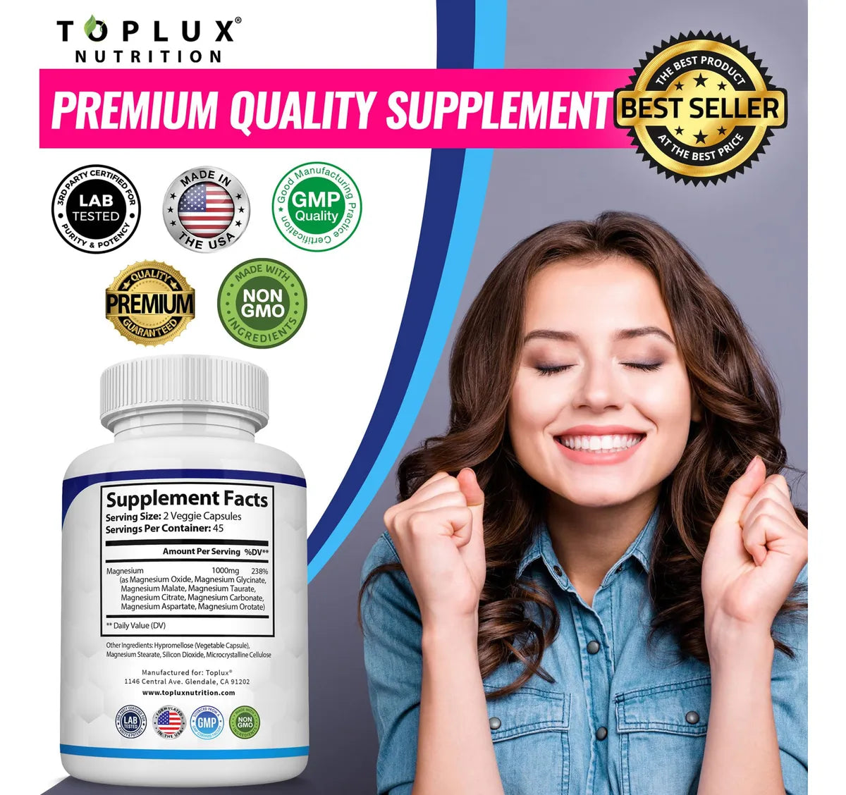 La mezcla de 8 formas de magnesio favorece la densidad ósea y la recuperación muscular tras la actividad física. Protege tu cuerpo del desgaste y mantente fuerte y activo en cada movimiento.