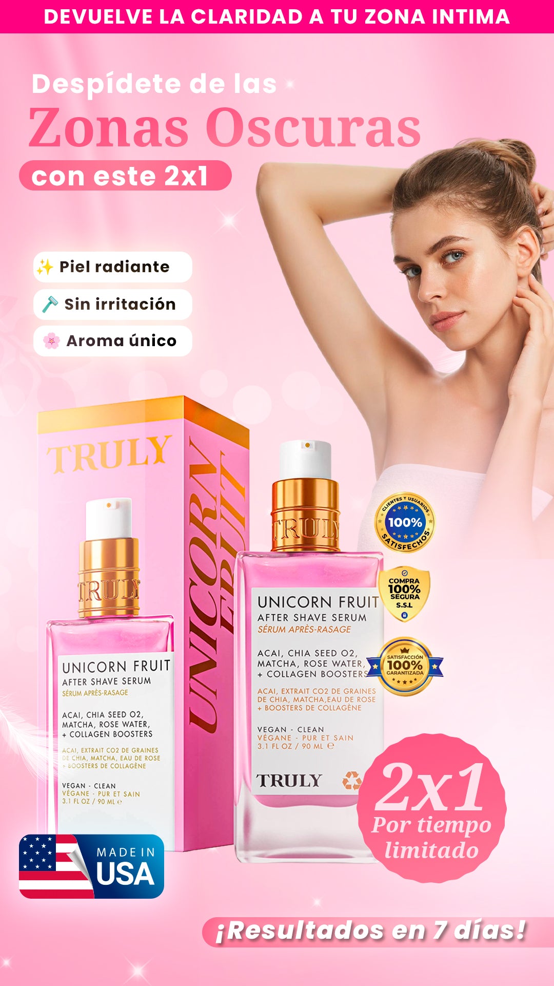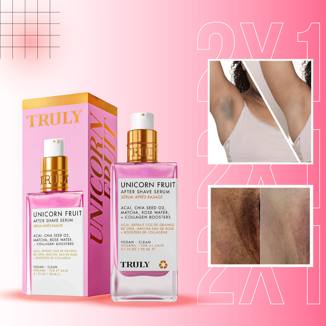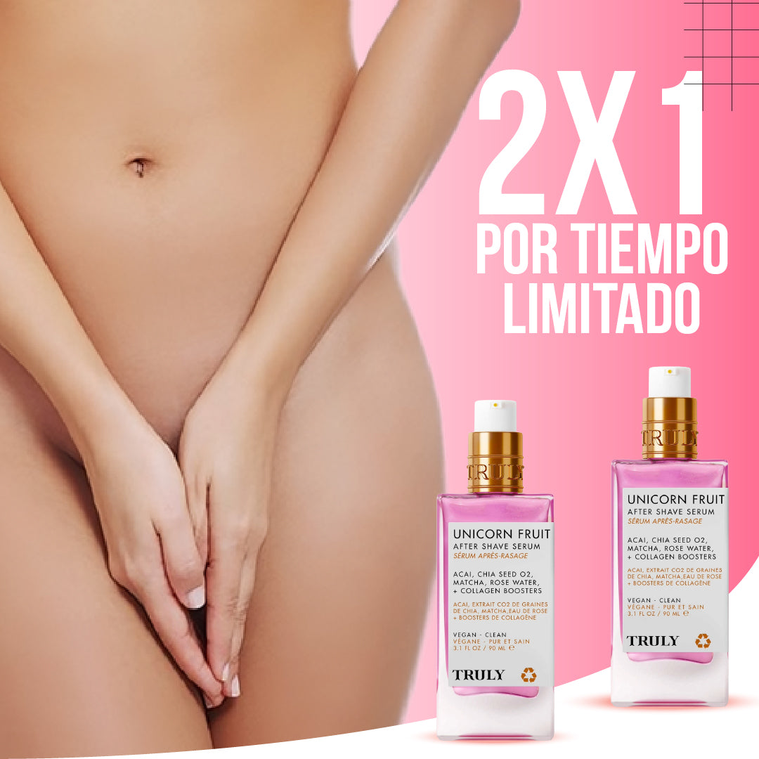 Con el uso constante de el aceite Truly, se reduce visiblemente la pigmentación en zonas sensibles y se previenen los vellos encarnados, dejando la piel más uniforme.