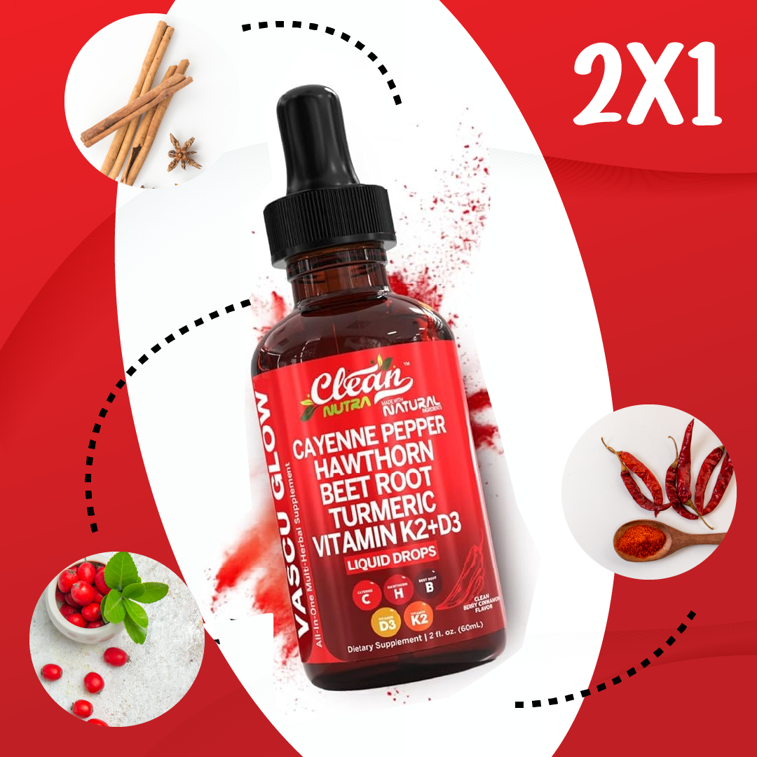 Vascu Glow con ingredientes naturales que promueven la elasticidad vascular y un flujo óptimo, protege tu sistema cardiovascular y mejora tu bienestar.